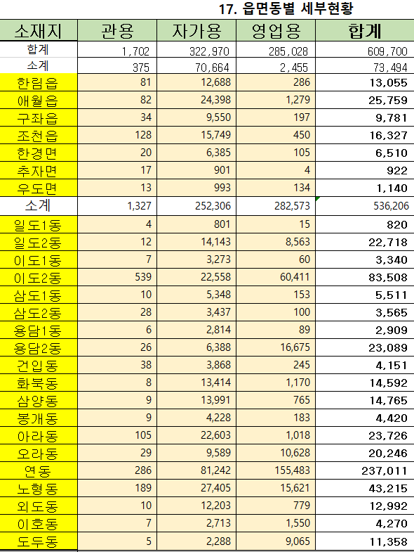 2025년 9월 30일 기준 제주시 행정동별 자동차등록현황