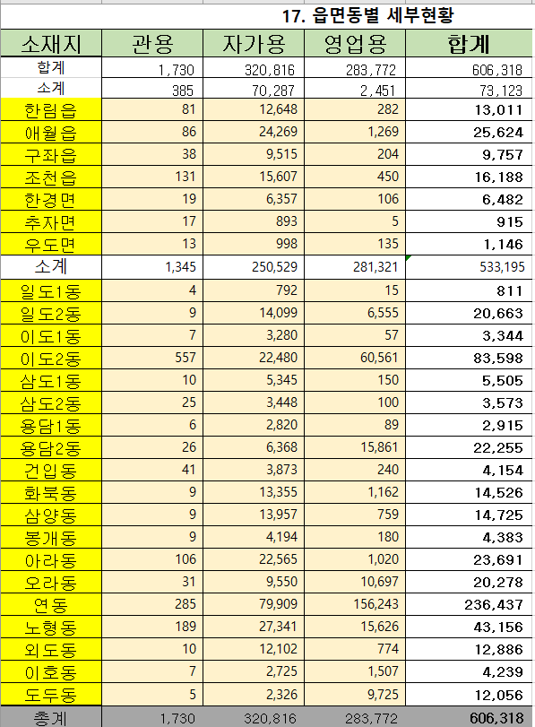 2025년 6월 30일 기준 제주시 행정동별 자동차등록현황