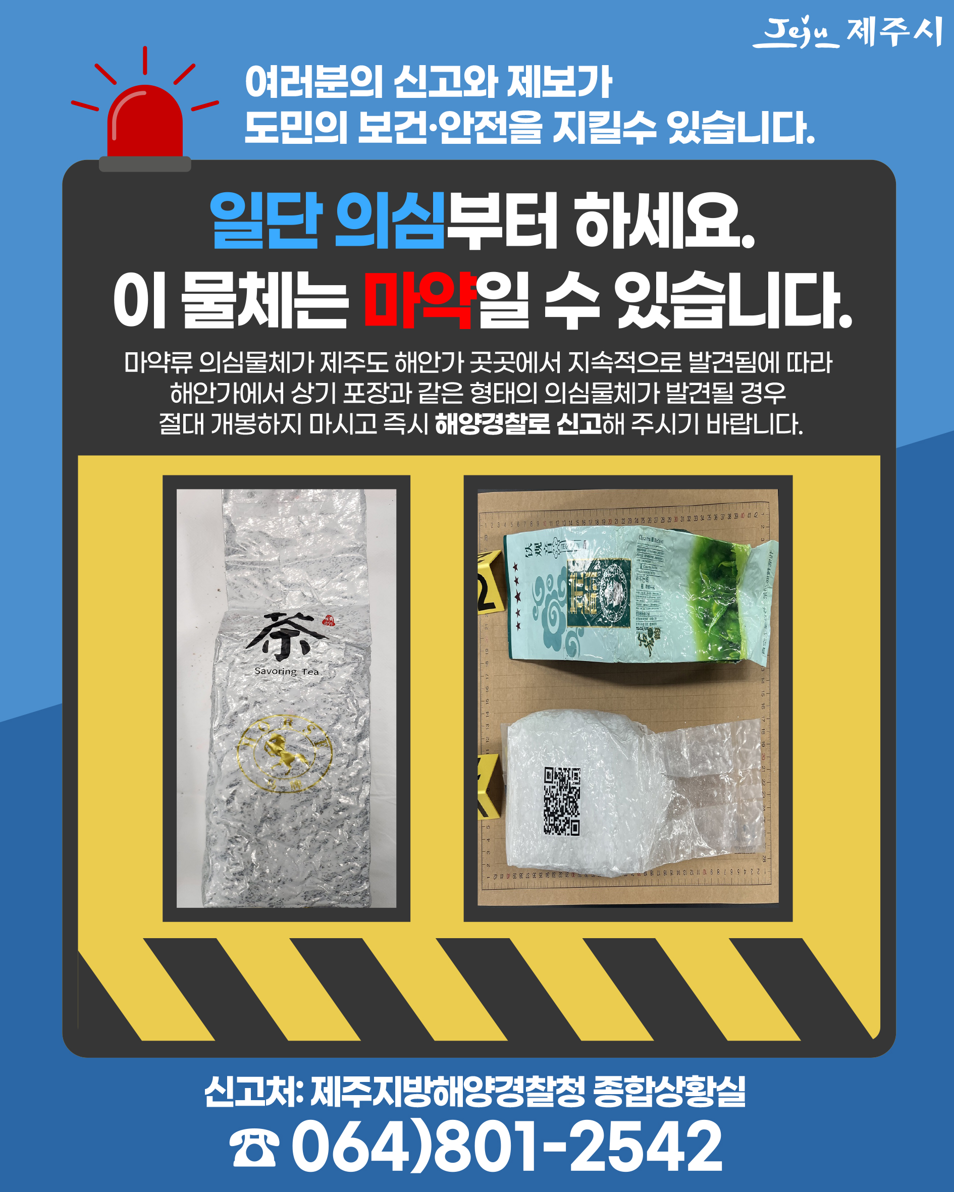 🚨 제주 해안가 마약류 의심 물질 발견 주의 안내 🚨