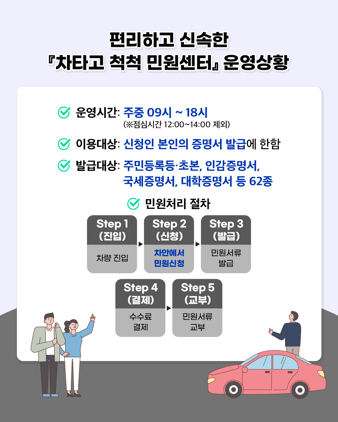 제주시 ‘차타고 척척 민원센터’가 함께합니다.
