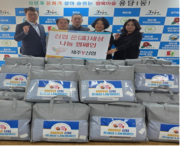 제주Y신협(이사장 여혜숙)은 지난 29일 용담1동주민센터를 방문해 지역 내 취약계층을 위한 이불 18세트를 기탁했다.