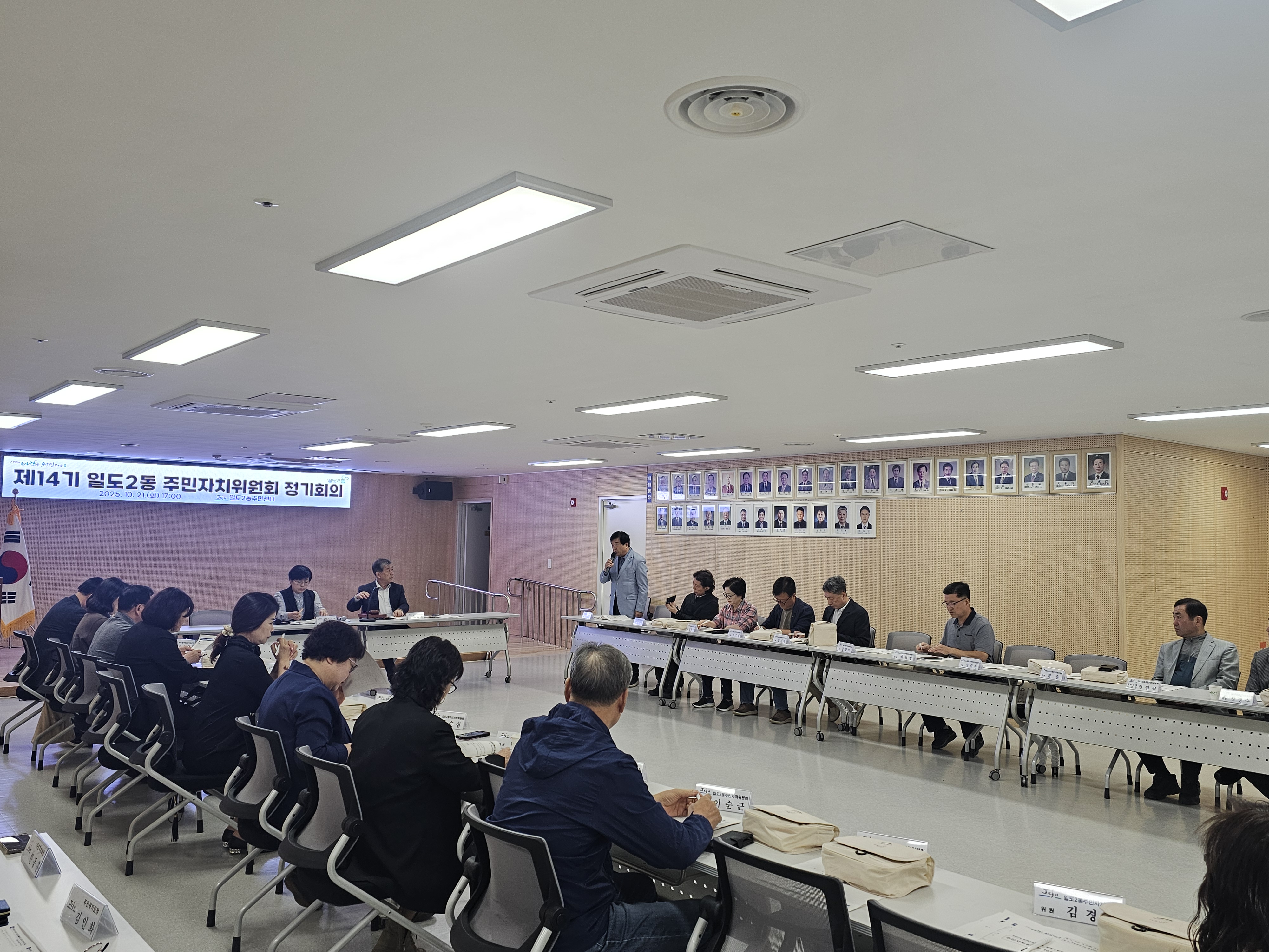 일도2동주민자치위원회(위원장 문상익)는 10월 21일, 동주민센터 3층 대회의실에서 주민자치위원 27명이 참여한 가운데 10월 정기회의를 개최했다.