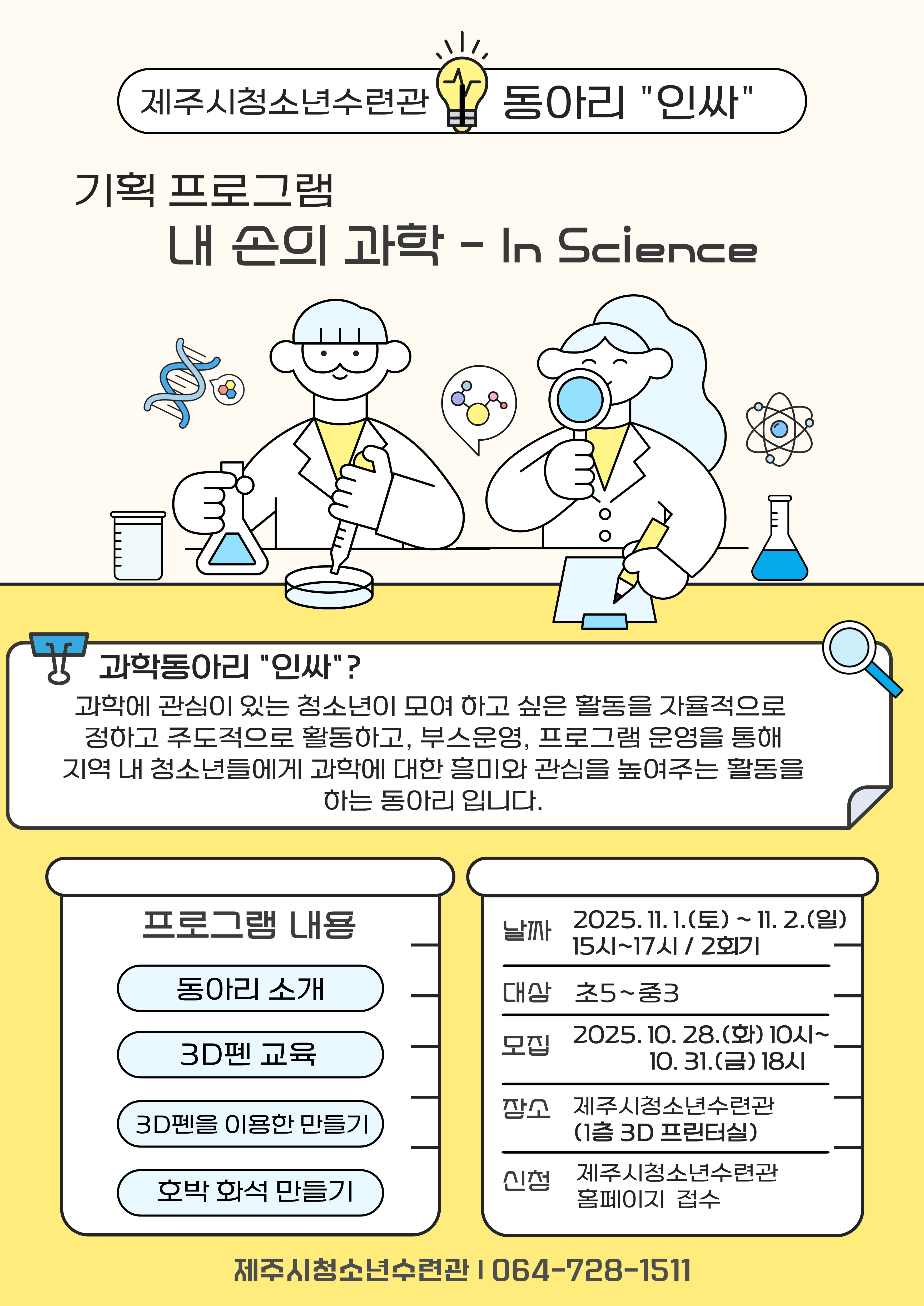 ▶ 문 의: 제주시청소년수련관(064-728-1511, 728-3483)